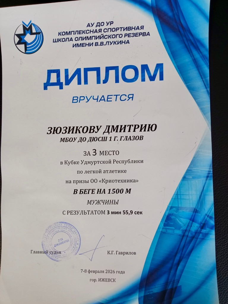 Наш студент, спортсмен глазовской ДЮСШ №1 - Дмитрий Зюзиков занял III место по итогам первого дня соревнований.